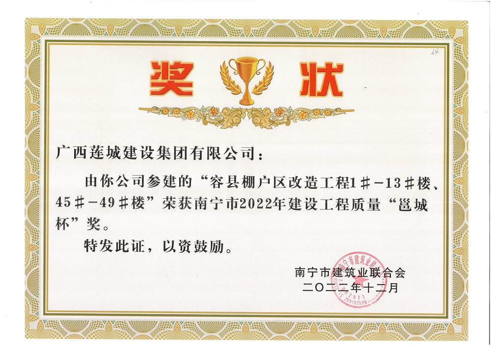 2022年建設(shè)工程質(zhì)量“邕城杯”獎(jiǎng)容縣棚戶區(qū)改造工程1#-13#樓、45#-49#樓