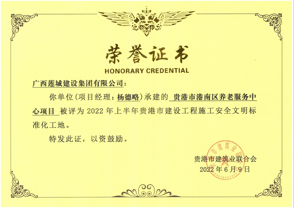 2022年上半年貴港市建設(shè)工程施工文明標(biāo)準(zhǔn)化工地貴港市港南區(qū)養(yǎng)老服務(wù)中心項(xiàng)目,項(xiàng)目經(jīng)理:楊德略