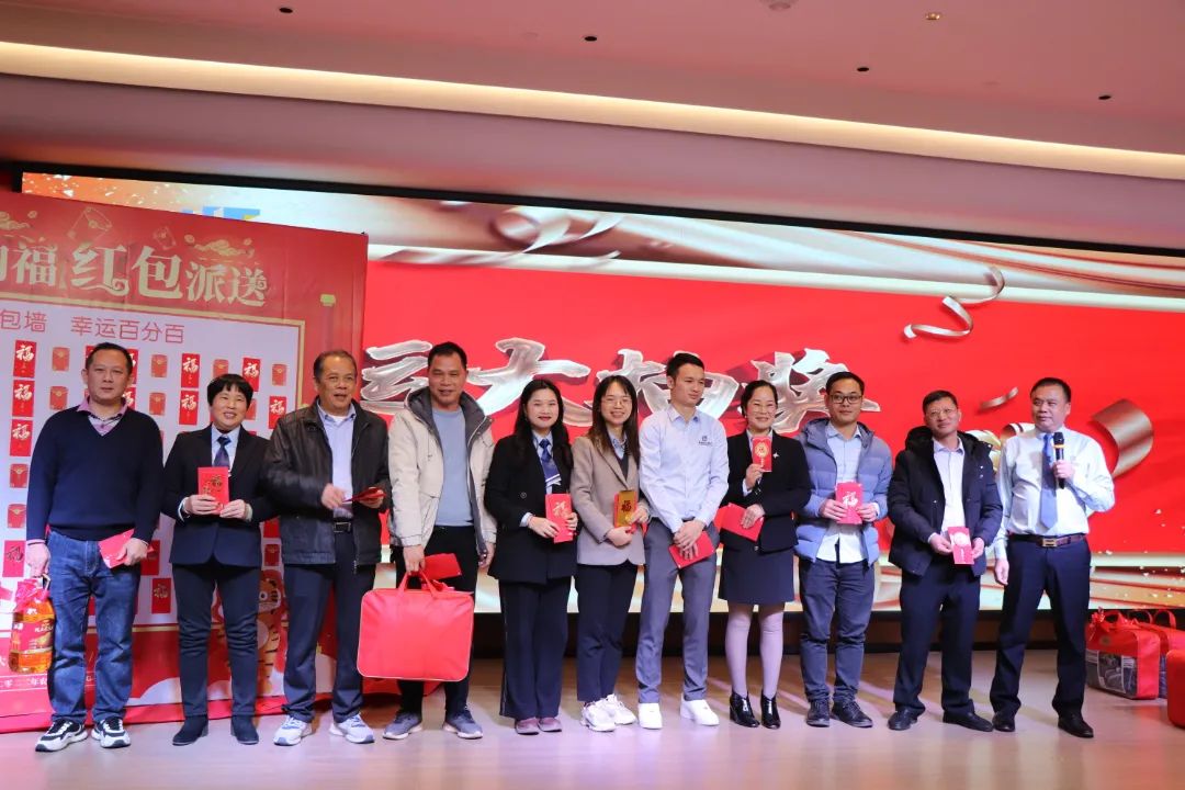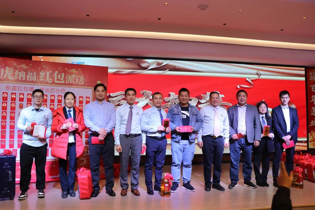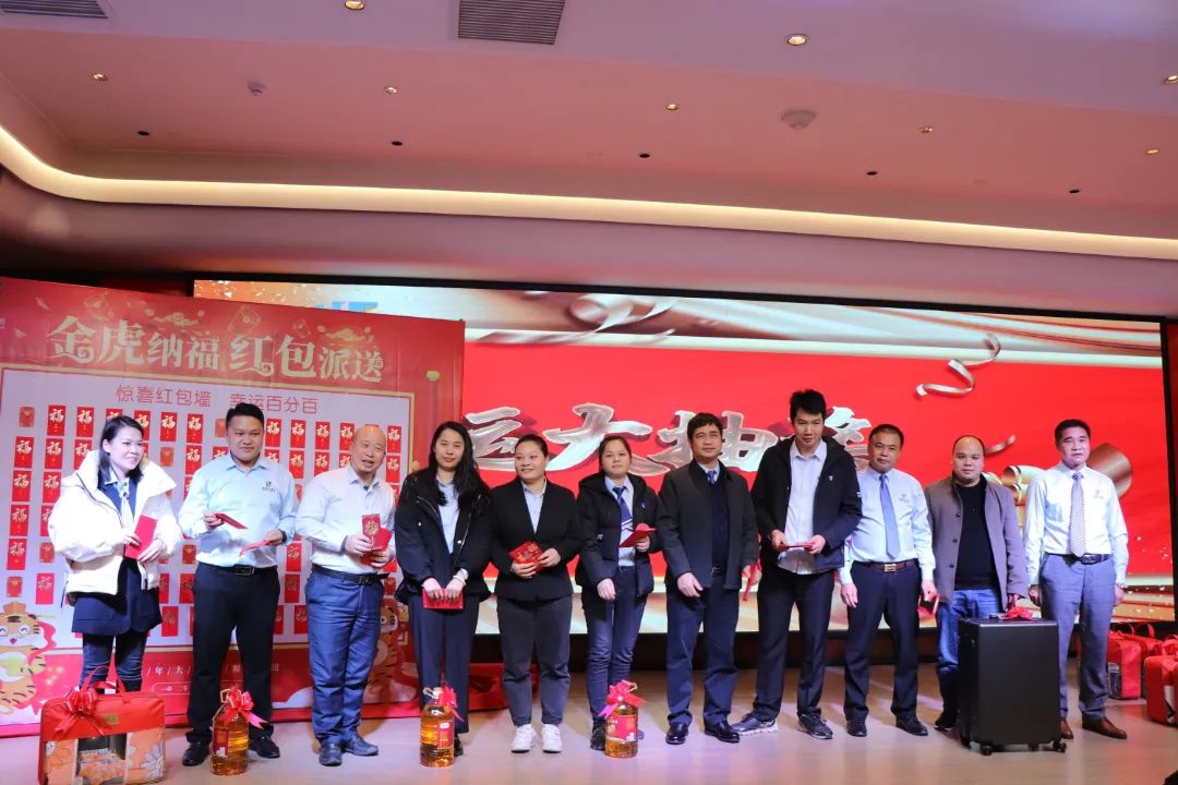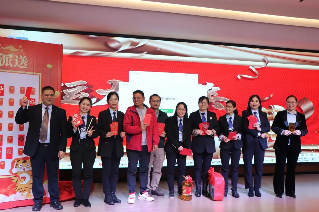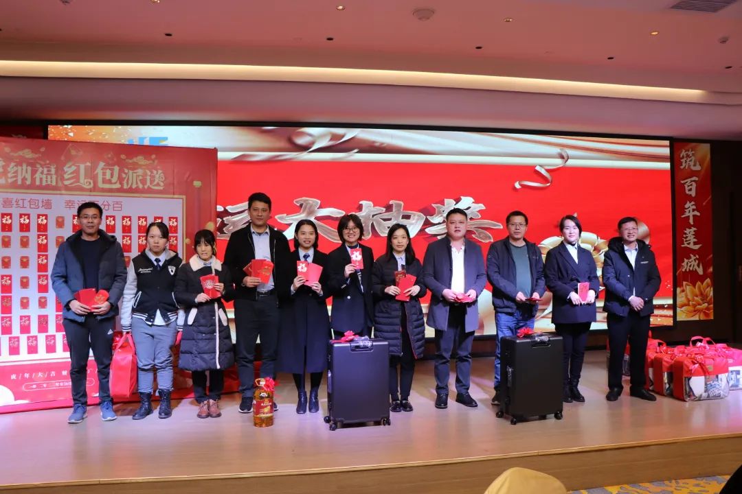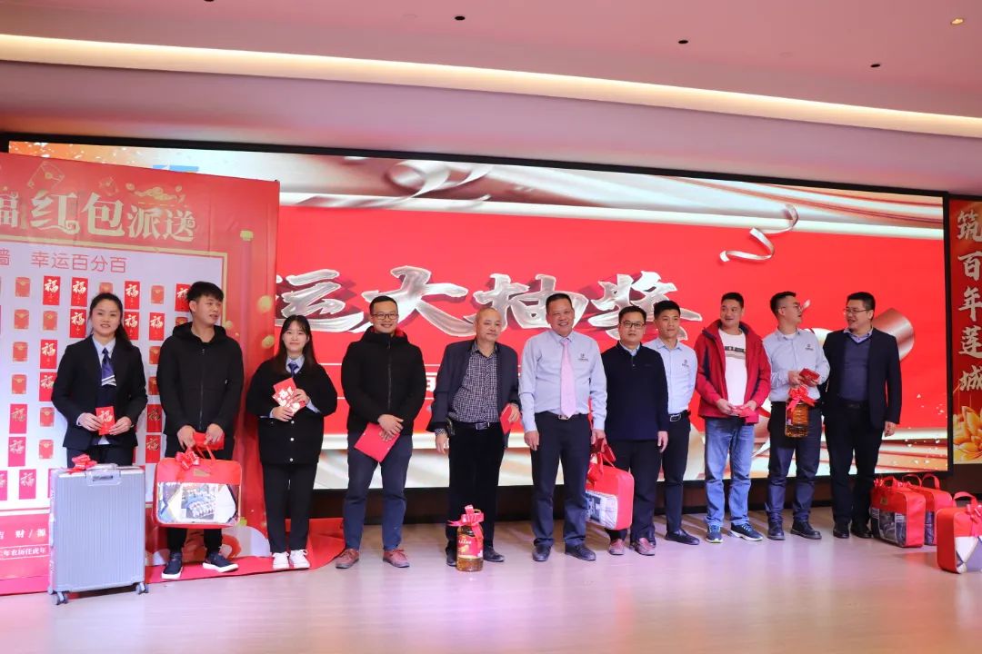 迎春晚宴及幸運(yùn)大抽獎活動在集團(tuán)公司董事長譚燕喜致祝酒詞中拉開帷幕,大家相互舉杯、互道祝福,現(xiàn)場氣氛異常熱烈。用餐20分鐘后,最令大家期待的幸運(yùn)大抽獎環(huán)節(jié)開始了。在陳夢華總經(jīng)理和譚燕喜董事長的首輪抽獎下,一共產(chǎn)生了30名幸運(yùn)兒,接著由各分管領(lǐng)導(dǎo)陸續(xù)抽出余下53名幸運(yùn)兒。諸多獎項(xiàng)一一揭曉,不斷將年會掀起高潮,笑聲、掌聲、歡呼聲不時(shí)地在整場晚宴活動中蕩漾。