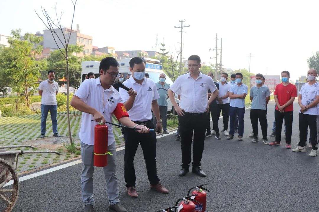 第二階段,由副總指揮黃志剛現(xiàn)場演示了消防器材的正確使用方法、撲救初期火災(zāi)方式及相關(guān)注意事項(xiàng),并組織員工體驗(yàn)現(xiàn)場滅火過程。