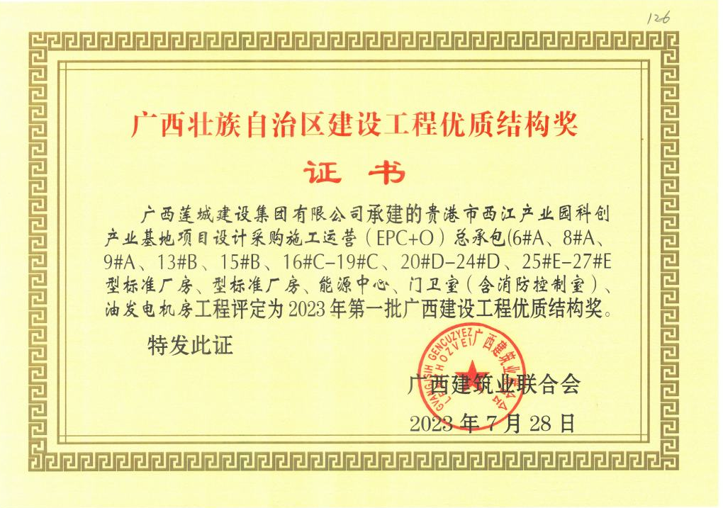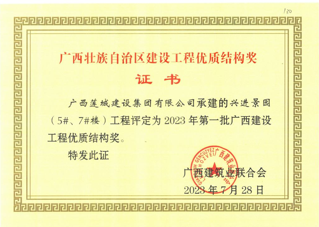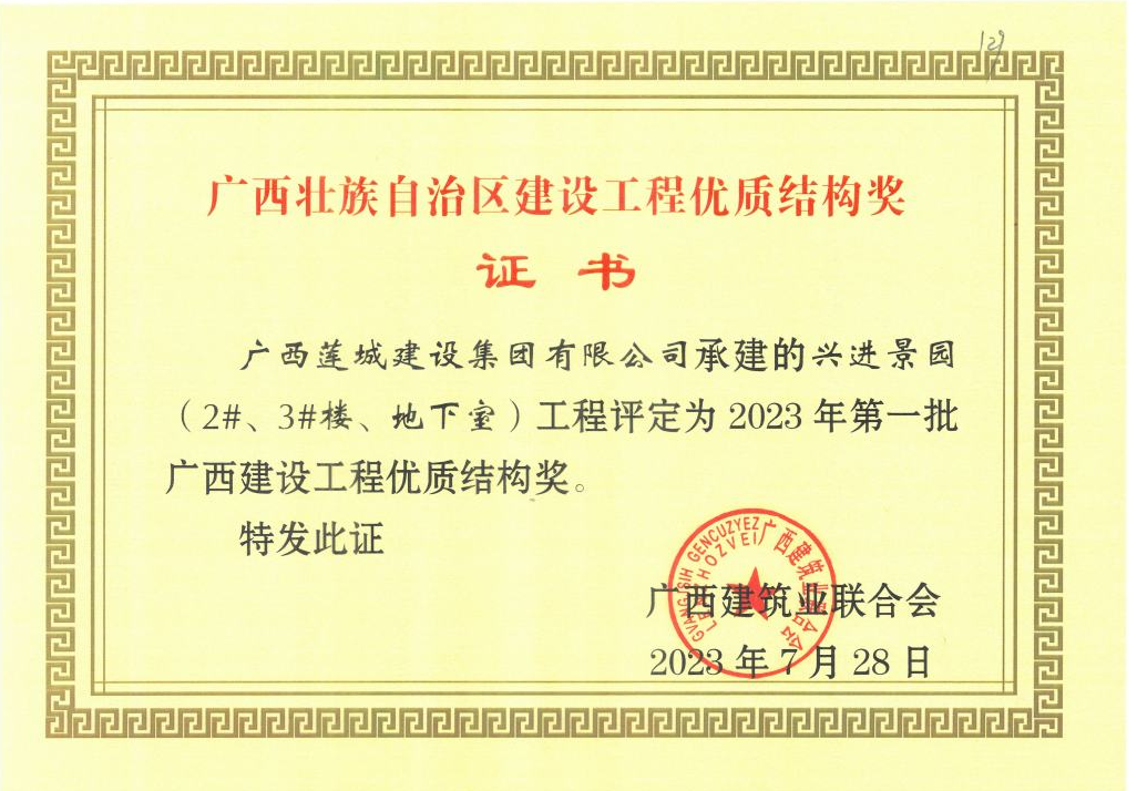 獲得2023年第一批廣西壯族自治區(qū)建設(shè)工程優(yōu)質(zhì)結(jié)構(gòu)獎的項目分別為:貴港市港南區(qū)養(yǎng)老服務(wù)中心工程、貴港市西江產(chǎn)業(yè)園科創(chuàng)產(chǎn)業(yè)基地項目設(shè)計采購施工運營(EPC+O)總承包(6#A、8#A、9#A、13#B、15#B、16#C-19#C、20#D-24#D、25#E-27#E型標準廠房、型標準廠房、能源中心、門衛(wèi)室(含消防控制室)油發(fā)電機房工程、桂平市人民醫(yī)院2號住院樓項目、年產(chǎn)16 萬噸高檔膨化配合飼料項目(主車間、成品車間、原料車間、消防控制室、辦公樓)工程、興進景園(2#、3#樓、地下室)工程、興進景園(5#、7#樓)工程。