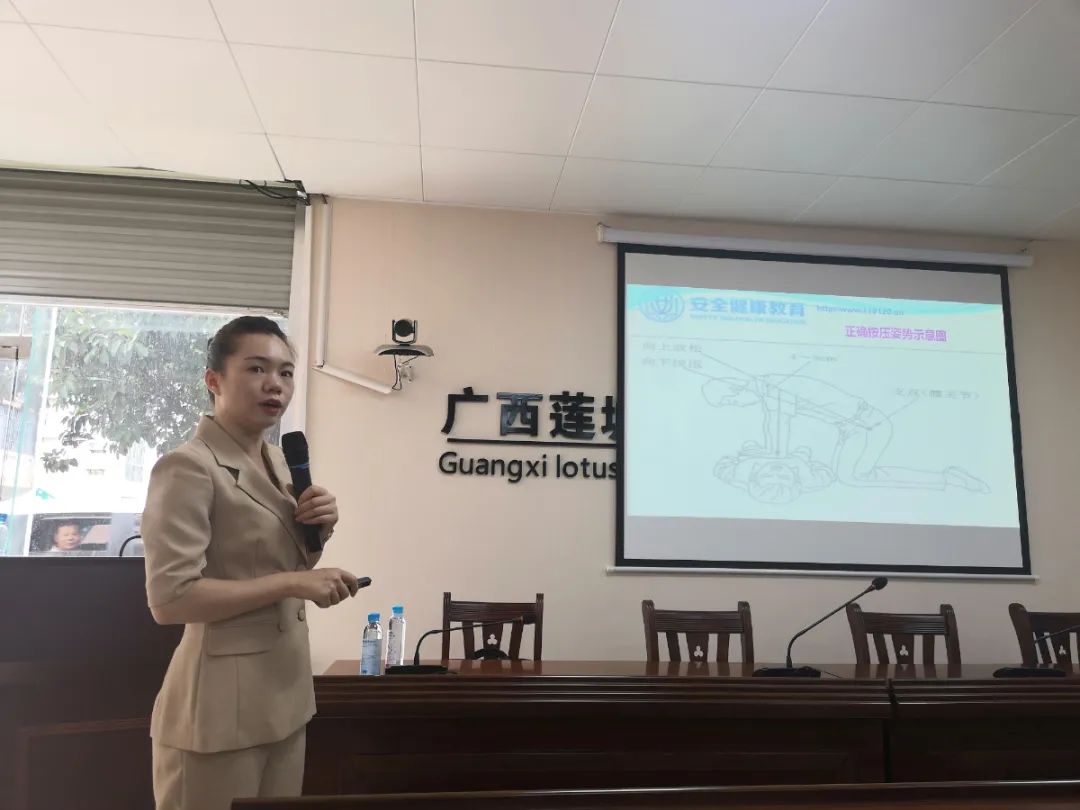 培訓班上,宣教老師趙婷婷就“落實安全責任,推動安全發(fā)展”為主題,給集團公司全體人員開展公益宣教。宣教內(nèi)容主要有預防和應對突發(fā)事故安全知識,如CPR急救術、突發(fā)暈倒、受傷出血等。針對辦公室職工常見慢性病、職業(yè)病預防知識、干部職工“三減三健”健康生活方式、職工心理健康疏導及室內(nèi)外空氣污染的防護知識等作了深入淺出的詳細講解。