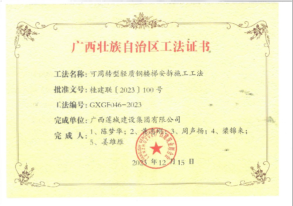 提高外墻真石漆施工一次合格率,三等獎,成員:陳夢華、譚景騰、姜紅華、梁志華、張和思、譚景達、黃志剛、李承耀、甘丹宇、陳遠琴提高屋面防水卷材施工質(zhì)量一次合格率,二等獎,小組成員:陳夢華、譚燕喜、姜紅華、陳霖、姜雄雁、黃文亮、黃志剛、岑毅、黃娟、韋建協(xié)提高現(xiàn)澆樓梯混凝土結(jié)構(gòu)施工質(zhì)量,三等獎,成員:陳夢華、譚...