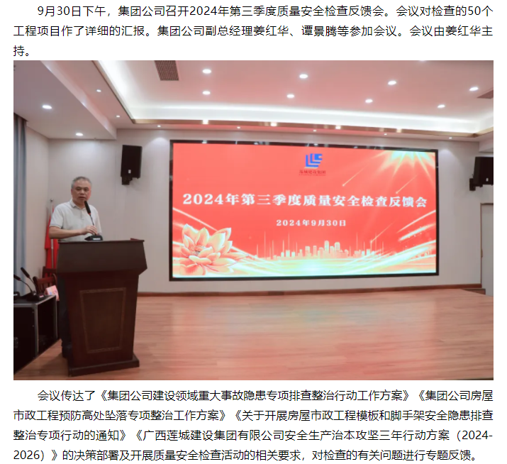 9月30日下午,集團(tuán)公司召開2024年第三季度質(zhì)量安全檢查反饋會。...