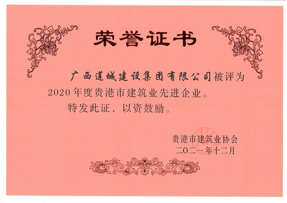 2020年度貴港市建筑業(yè)先進企業(yè)