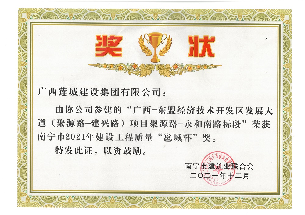 2021年南寧市建設(shè)工程質(zhì)量“邕城杯”廣西-東盟經(jīng)濟技術(shù)開發(fā)區(qū)發(fā)展大道(聚源路-建興路)