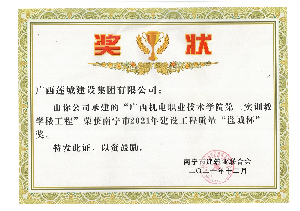 2021年南寧市建設(shè)工程質(zhì)量“邕城杯”廣西機電職業(yè)技術(shù)學院第三實訓教學樓工程