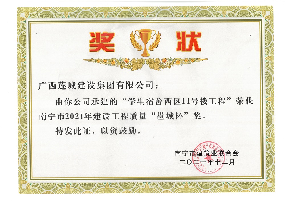 2021年貴港市建設(shè)工程優(yōu)質(zhì)結(jié)構(gòu)獎蓮城大廈工程,項目經(jīng)理:姜雄雁