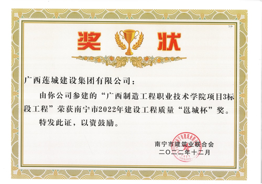 2022年建設(shè)工程質(zhì)量“邕城杯”獎(jiǎng)廣西制造工程職業(yè)技術(shù)學(xué)院項(xiàng)目3標(biāo)段工程