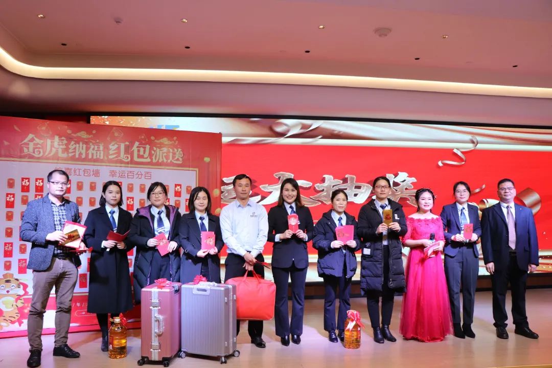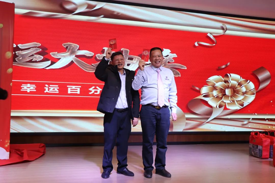 迎春晚宴及幸運(yùn)大抽獎活動在集團(tuán)公司董事長譚燕喜致祝酒詞中拉開帷幕,大家相互舉杯、互道祝福,現(xiàn)場氣氛異常熱烈。用餐20分鐘后,最令大家期待的幸運(yùn)大抽獎環(huán)節(jié)開始了。在陳夢華總經(jīng)理和譚燕喜董事長的首輪抽獎下,一共產(chǎn)生了30名幸運(yùn)兒,接著由各分管領(lǐng)導(dǎo)陸續(xù)抽出余下53名幸運(yùn)兒。諸多獎項(xiàng)一一揭曉,不斷將年會掀起高潮,笑聲、掌聲、歡呼聲不時(shí)地在整場晚宴活動中蕩漾。