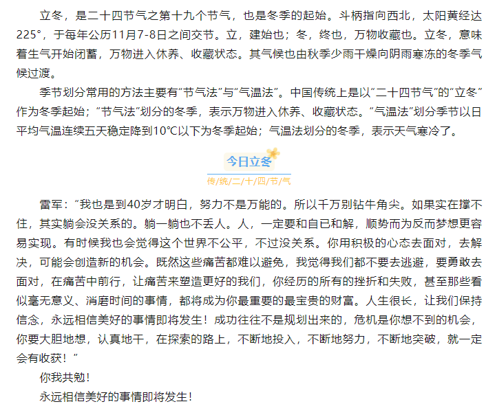 今日立冬|永遠相信美好的事情即將發(fā)生!