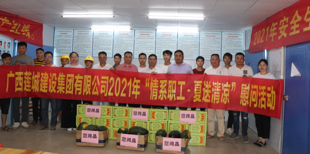 為切實(shí)做好夏季防暑降溫工作,關(guān)心和維護(hù)職工身心健康,8月25日下午,集團(tuán)公司副總經(jīng)理、總工程師姜紅華,總經(jīng)理助理、經(jīng)營處處長謝喬勇等一行6人前往港南區(qū)婦幼保健院項(xiàng)目、順祥府項(xiàng)目、貴港市西江產(chǎn)業(yè)園科創(chuàng)產(chǎn)業(yè)基地開展“情系職工 夏送清涼”慰問活動,對在酷暑難耐的炎熱天氣中仍堅(jiān)守工作崗位的項(xiàng)目基層職工進(jìn)行慰問,并送上王老吉、西瓜等清涼飲品。