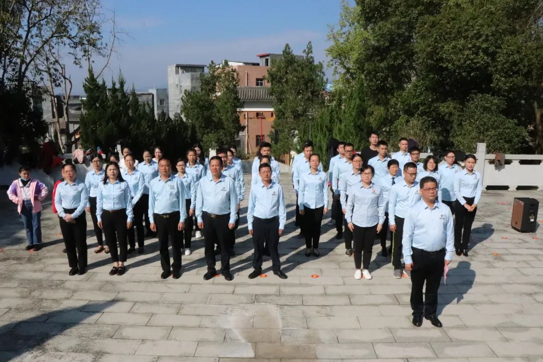 為了進一步加強干部隊伍革命傳統(tǒng)教育,切實用黨的偉大成就激勵人、用黨的優(yōu)良傳統(tǒng)教育人、用黨的成功經(jīng)驗啟迪人、用黨的歷史教訓警示人,傳承紅色基因,弘揚革命傳統(tǒng),不忘初心,堅定信念,勇?lián)姑?,凝心聚力,全力促進集團公司高質量發(fā)展,根據(jù)集團公司黨史學習教育活動工作計劃安排,11月13日,集團公司組織全體員工赴港北區(qū)奇石鄉(xiāng)中秋起義紀念館、覃塘區(qū)三里鎮(zhèn)羅村中共廣西省代表大會(羅村會議)舊址開展“追憶百年黨史 傳承紅色基因”主題黨日活動。集團公司總經(jīng)理陳夢華,董事長譚燕喜,副總經(jīng)理、總工程師姜紅華,總經(jīng)理助理謝喬勇等參加。